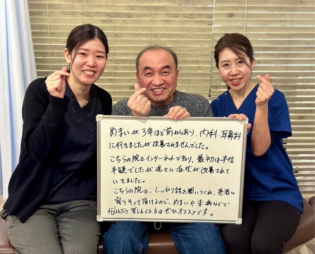 原因不明のめまいが3年ほど前からあり、内科、耳鼻科に行きましたが改善されませんでした。