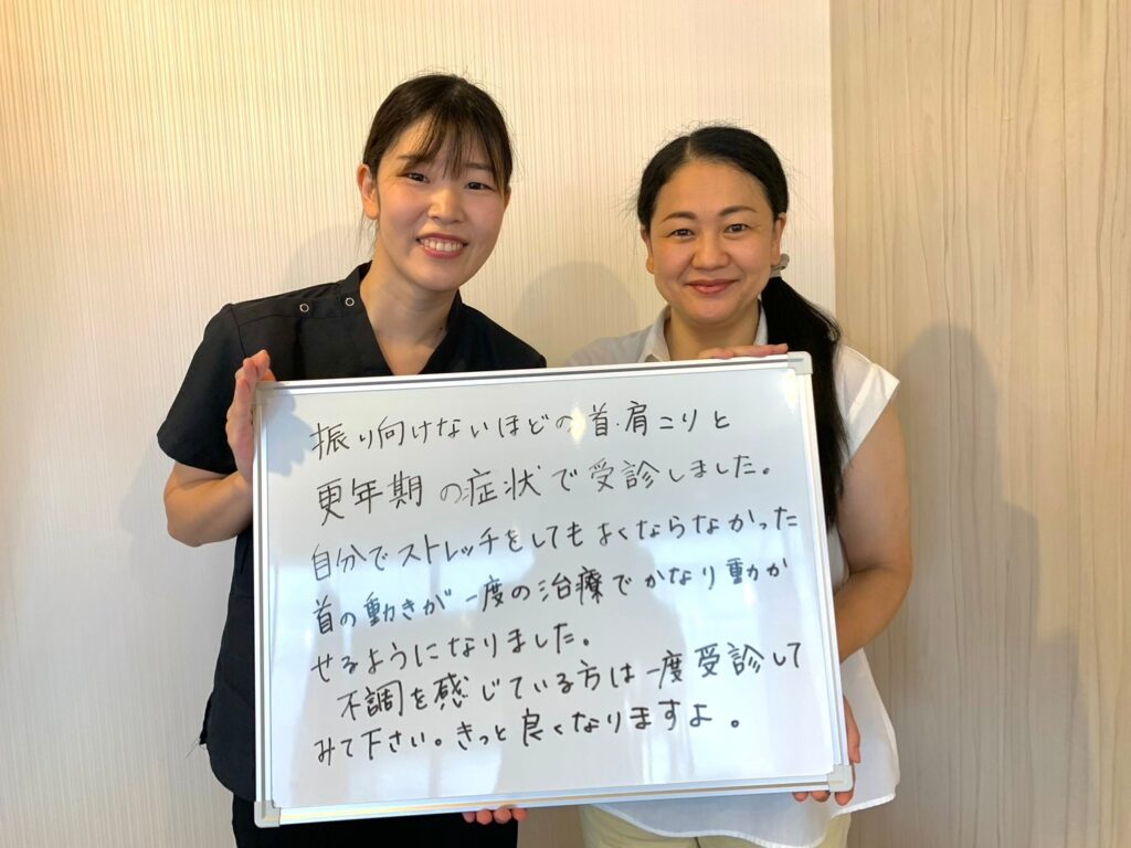 振り向けない程の首肩こりと、更年期の症状で受診しました。