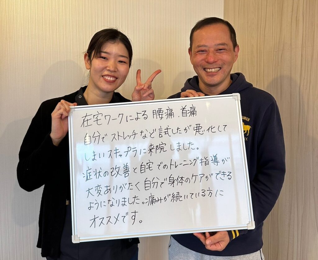在宅ワークによる腰痛、首痛を自分でストレッチなど試しましたが、より悪化してしまいこちらに来院しました。
