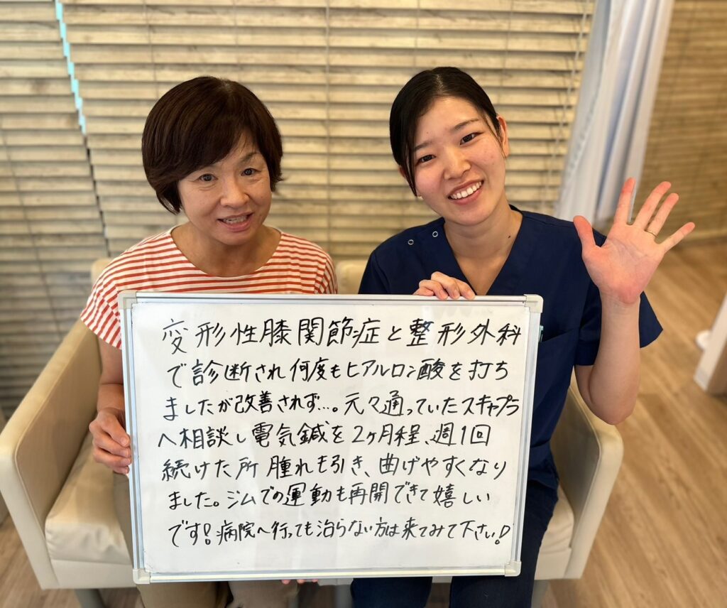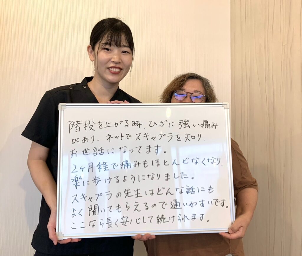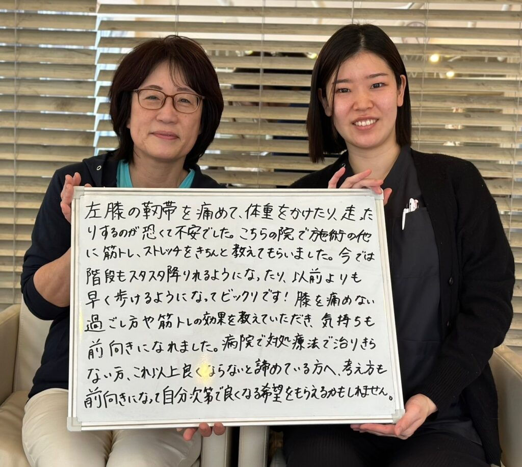 膝を痛めない過ごし方や筋トしの効果を教えていただき、気持ちも前向きになれました。