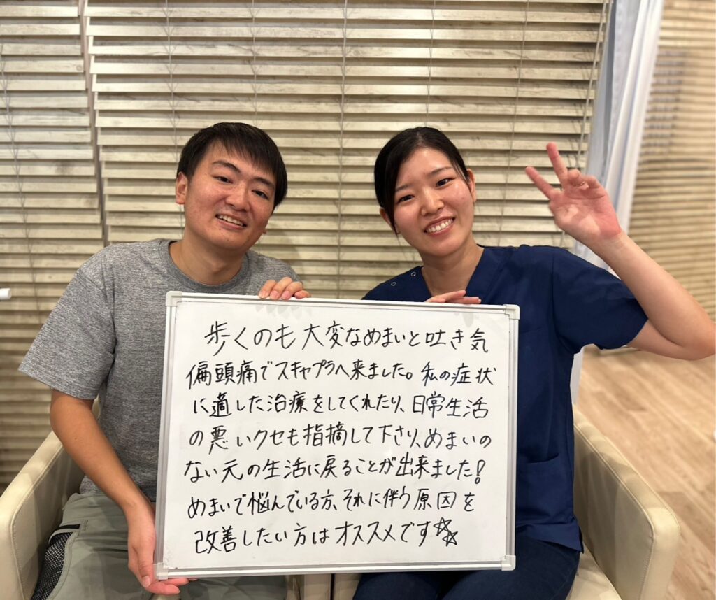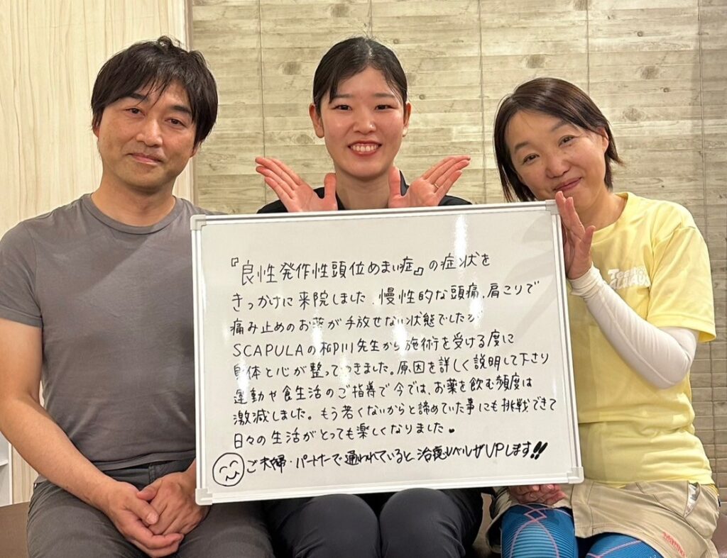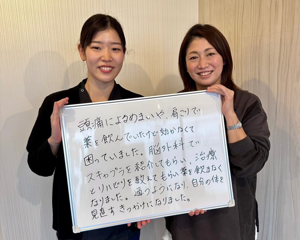 『良性発作性頭位めまい症』の症状をきっかけに来院しました。慢性的な頭痛、肩こりで痛み止めのお薬が手放せない状態でした。