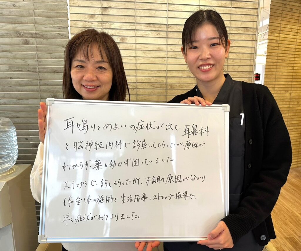 「原因不明の耳鳴りとめまいが改善!」