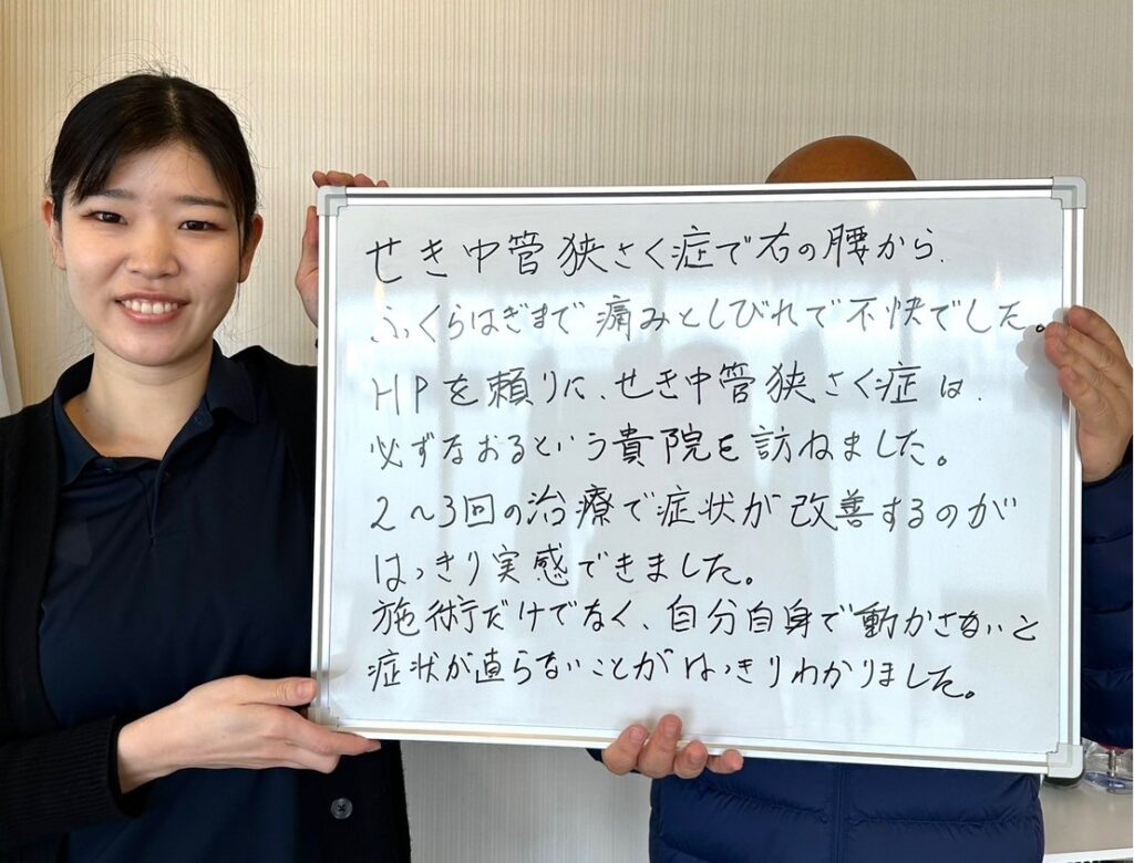 「脊柱管狭窄症が2〜3回の治療で改善!」