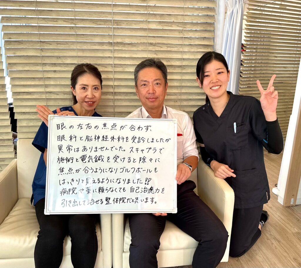 こちらで施術と電気鍼を受けると除々に焦点が合うようになりゴルフボールもはっきりと見えるようになりました!!