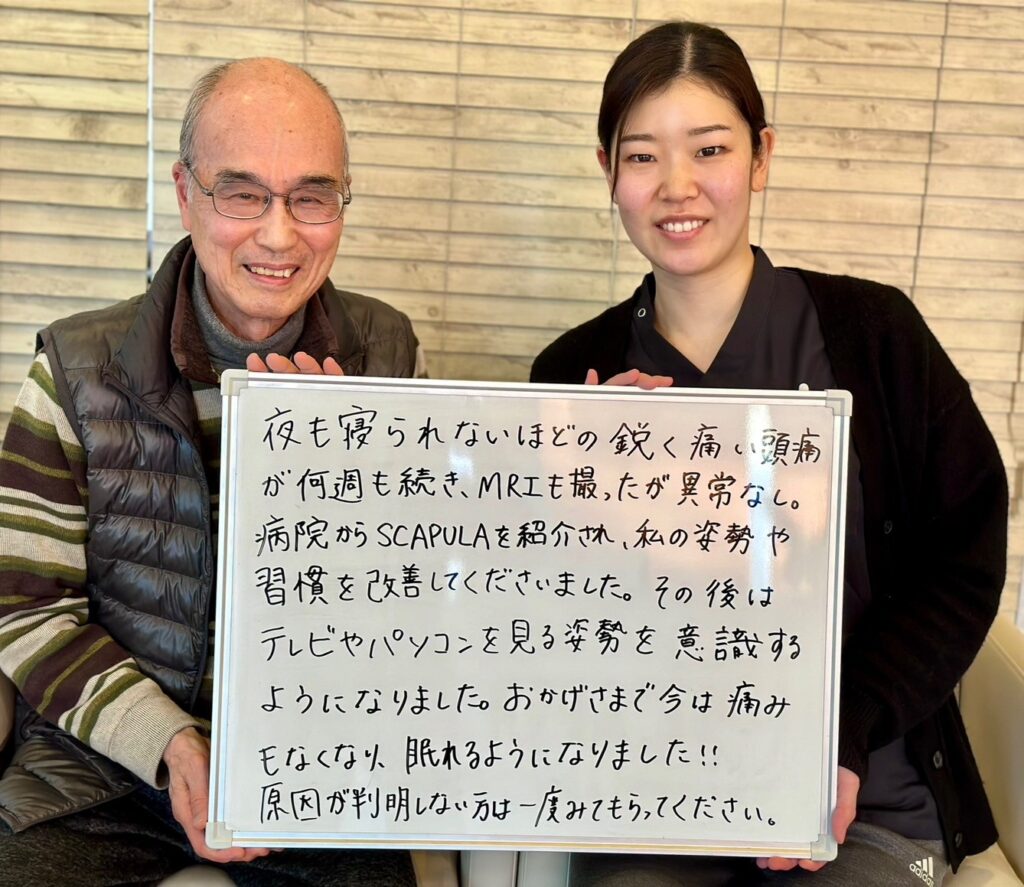 頭痛のメカニズムを教わり、体の矯正や運動により改善!閃輝暗点はなくなりました。