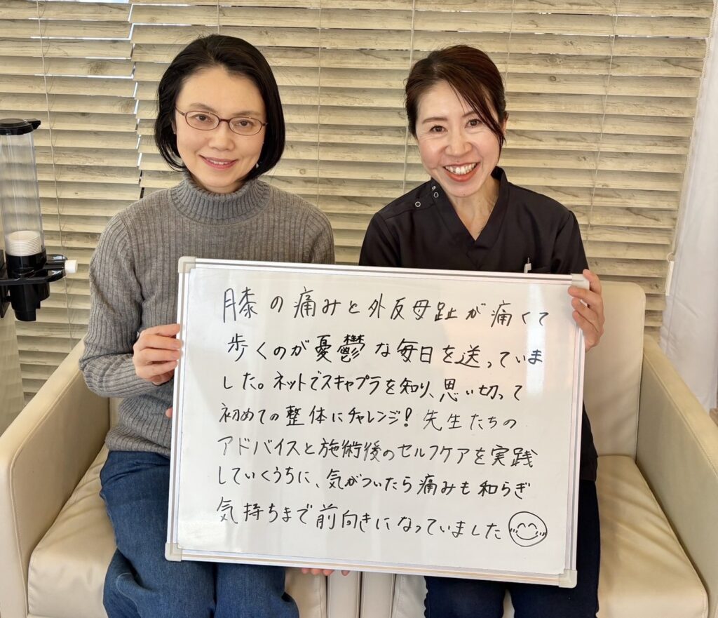 ネットでこちらを知り、通うようになってから痛みがなくなり、歩行も問題なくできるようになりました。日常生活が改善されて本当に良かったです。