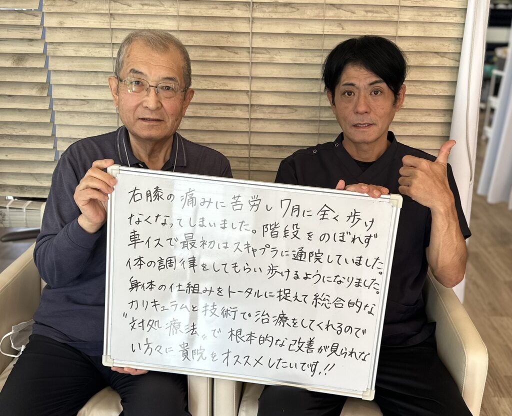 「全く歩けなかった膝痛が車椅子なしで歩けるようになった!」